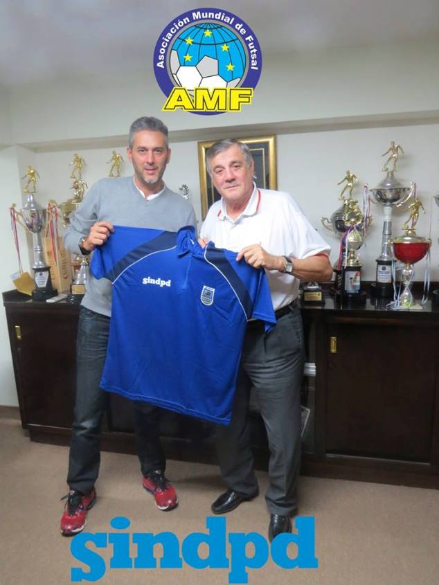 Homenagem do Sindpd representando por Ronaldo Leite a AMF Associação Mundial de Futsal recebida pelo seu Presidente Rolando Alarcon Rios.