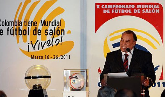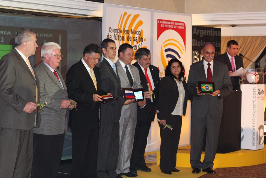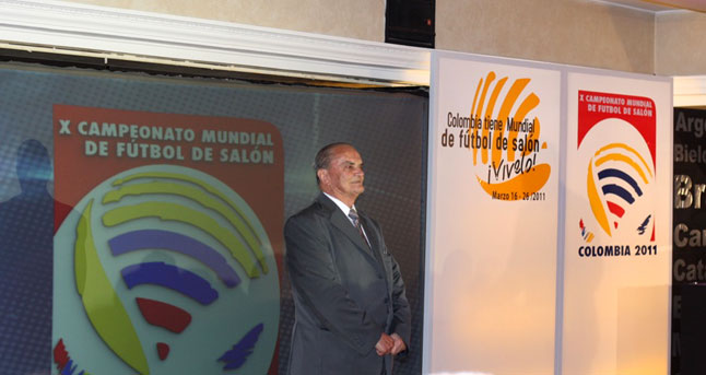 A emocionante cerimônia de lançamento da X Copa do Mundo de Futebol de Salão AMF 2011, foi coordenada pelos anfitriões: Dr. Manuel Sánchez Aguirre, atual Presidente da Federação Colombiana de Futebol de Salão e pelo Dr. Rolando Alarcón Ríos, Presidente da AMF.
