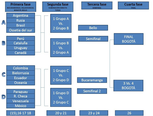 Grupo A - Cidade: BUCARAMANGA - Paises: Argentina, Rússia, Brasil e Osetia do Sul.