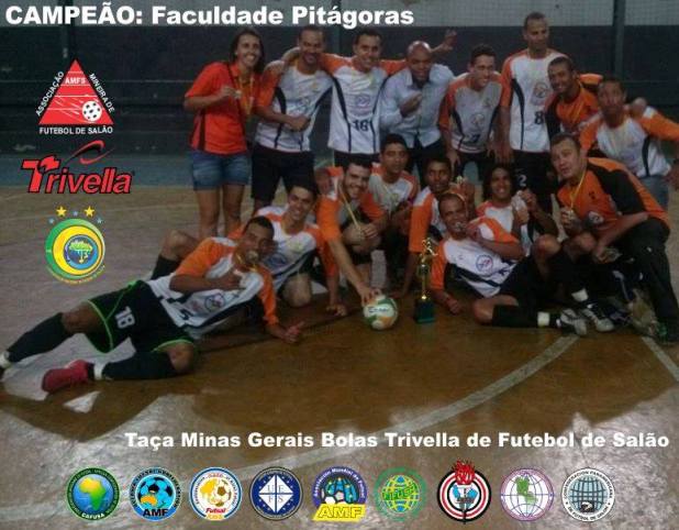 Faculdade Pitágoras é a equipe campeã da Taça Minas Gerais Bolas Trivella de Futebol de Salão - 2014. O evento foi organizado pela Federação de Futebol de Salão de MG (Liga Mineira), chancelado pela Confederação Nacional de Futebol de Salão, entidade filiada a AMF Associação Mundial de Futebol de Salão. Êxitos Faculdade Pitágoras no Futebol de Salão, histórico e independente da FIFUSA/AMF!