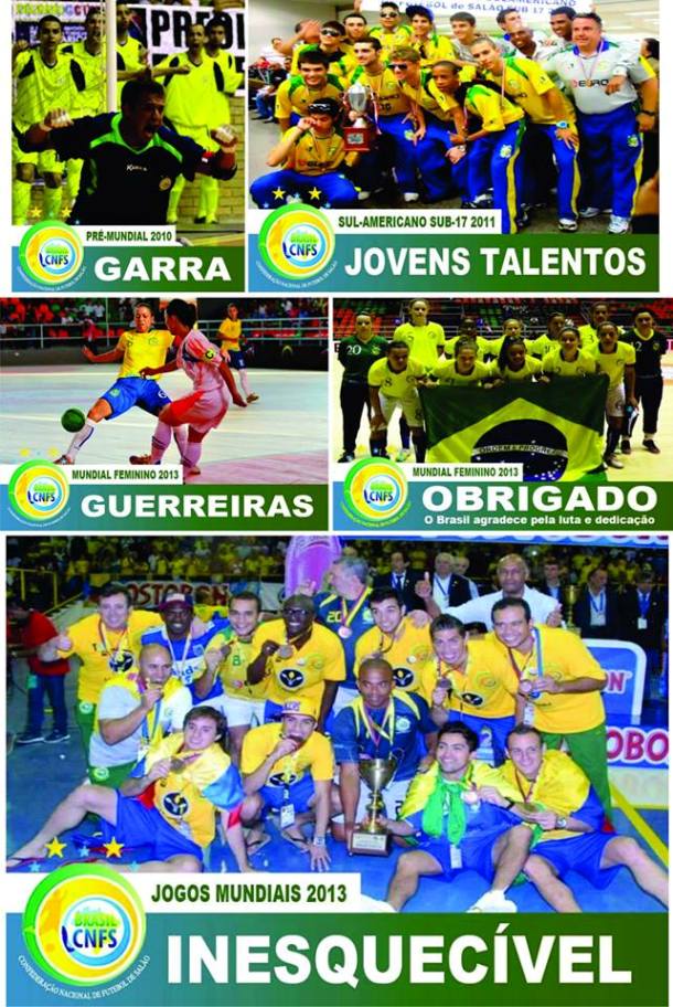 As Seleções Brasileiras de Futebol de Salão da Confederação Nacional de Futebol de Salão, sempre representaram dignamente o Brasil e sempre representará. Obrigado a todos os atletas, dirigentes, técnicos, comissão técnica em geral e parceiros que sempre acreditaram no trabalho e na luta e sempre confiaram na nossa representatividade. Conheça mais sobre nossas seleções: seleção masculina principal (CNFS) e seleção feminina principal (CNFS)